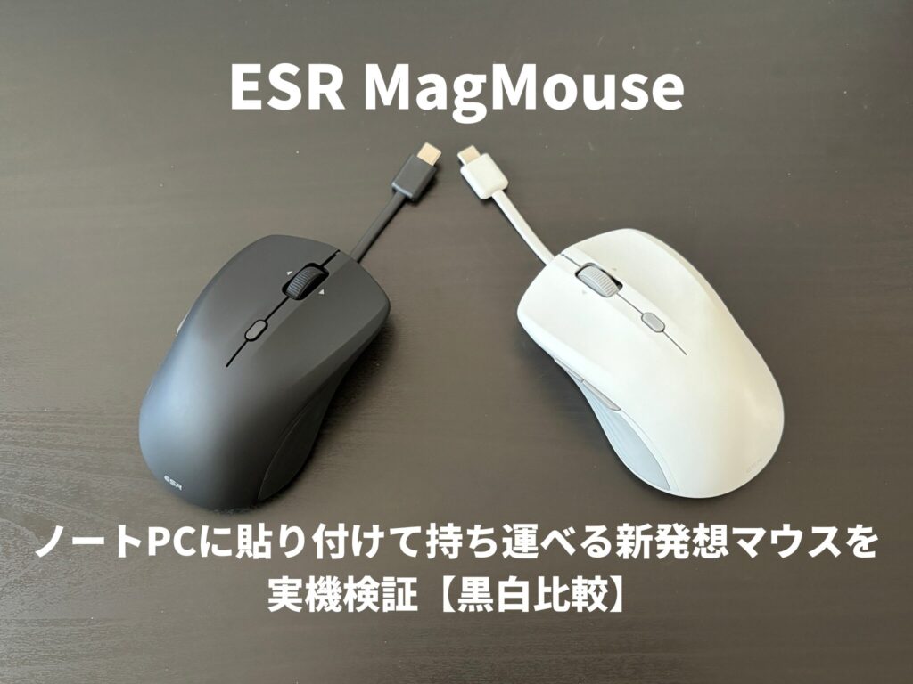 ESR MagMouseレビュー|ノートPCに貼り付けて持ち運べる新発想マウスを実機検証【黒白比較】