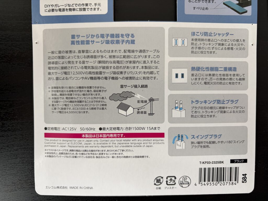 | 製品名 | シャッター雷ガード付クリップタップ2.5m |