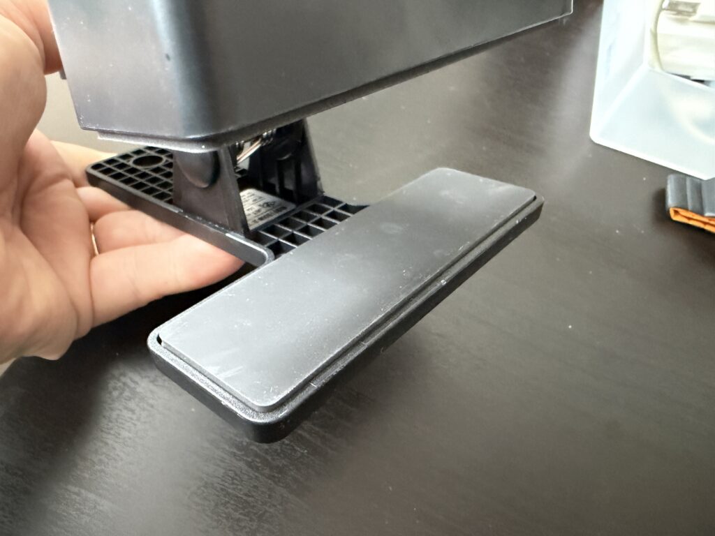 ハサミ口上下の部分にはゴム製のすべり止め加工がされているので、しっかりとデスクに固定ができます。