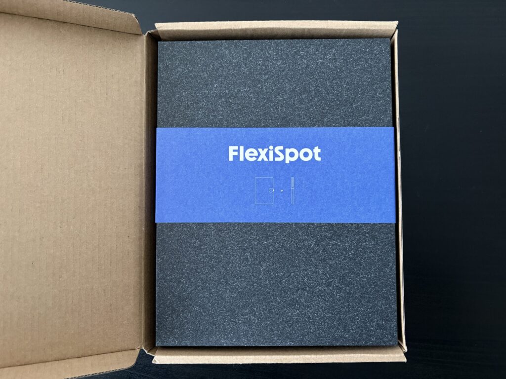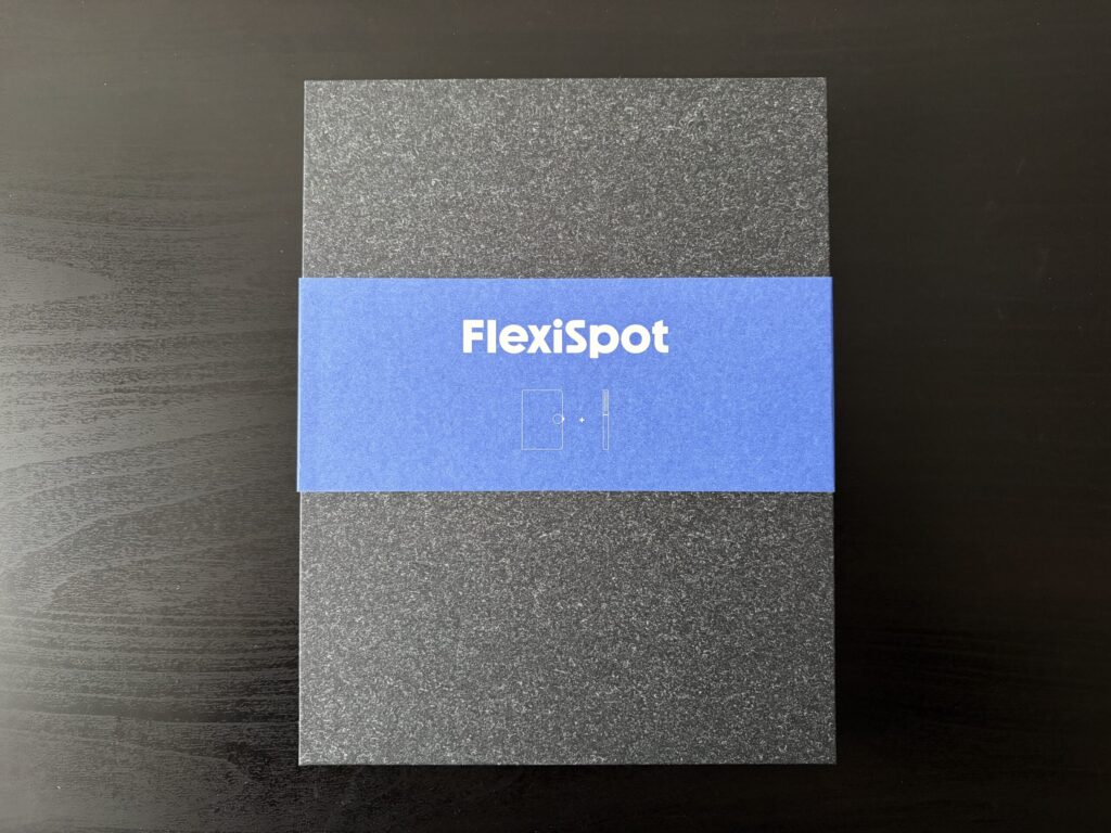 開封すると、「FlexiSpot」の帯が付いたノートブックが現れました。