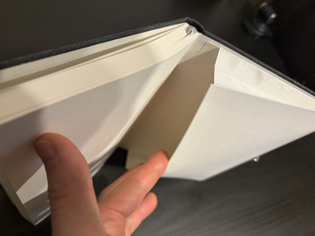 ノートの紙はペラペラした安価なものではなく、しっかりと厚みがあり、個人的な感覚ですが、あの「MOLESKINE(モレスキン)」のノートに近い上質さを感じました。