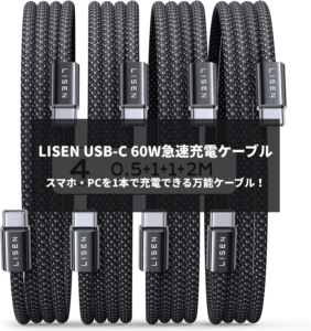 今回は、スマホのアクセサリー類で定評のある LISEN(リセン) のUSB-C急速充電ケーブルをご紹介します。