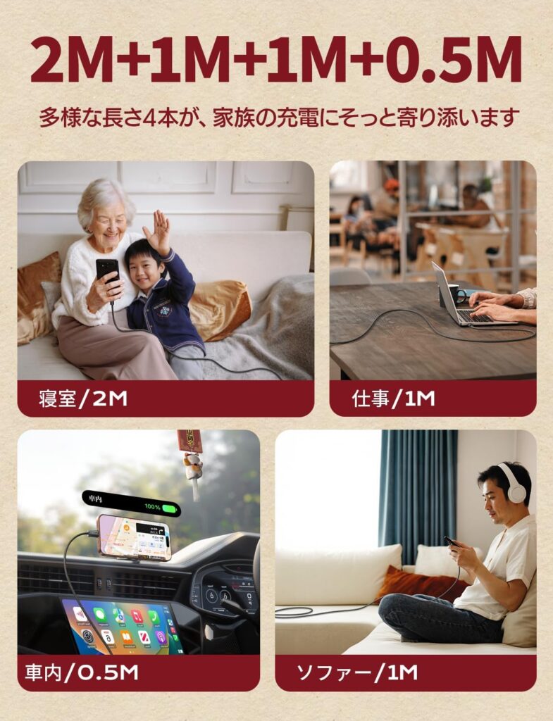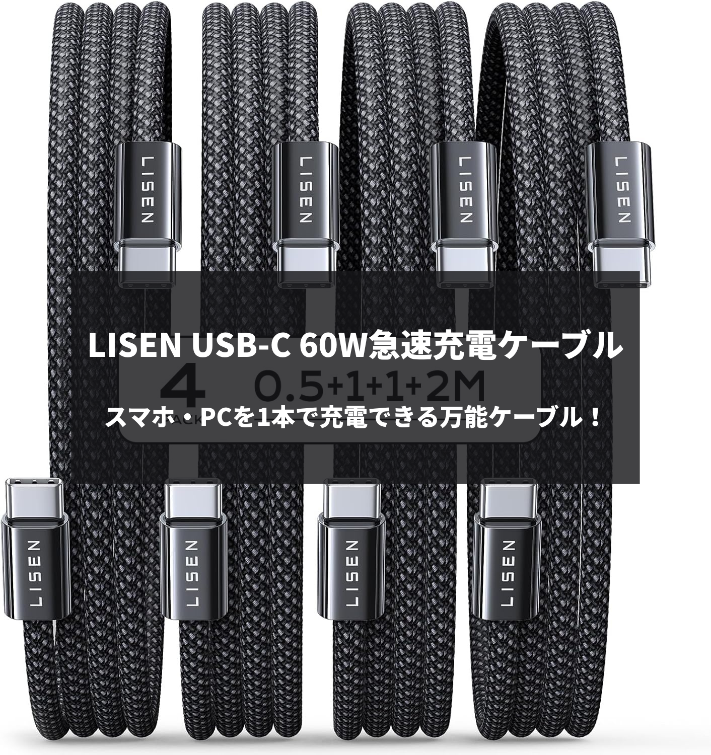 LISENのUSB-Cケーブルは【0.5m+1m+1m+2m】の4本セットです。