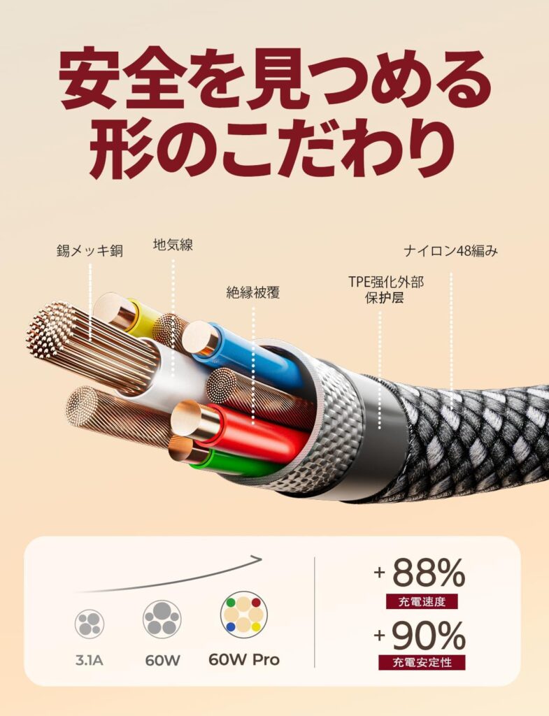 60W対応ケーブルとしてはかなり手頃な価格帯。