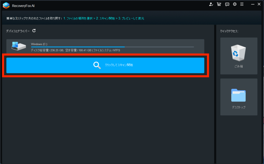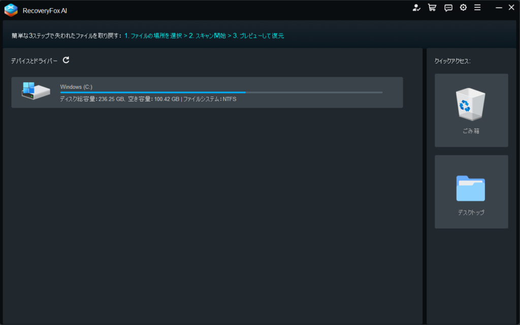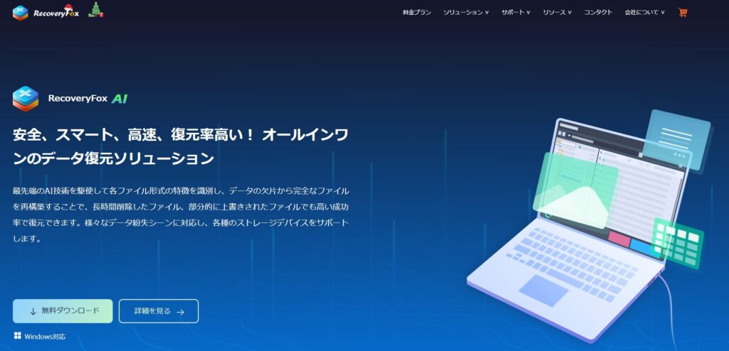 RecoveryFox AIは、Windowsパソコンで使用できるデータ復旧ソフトです。