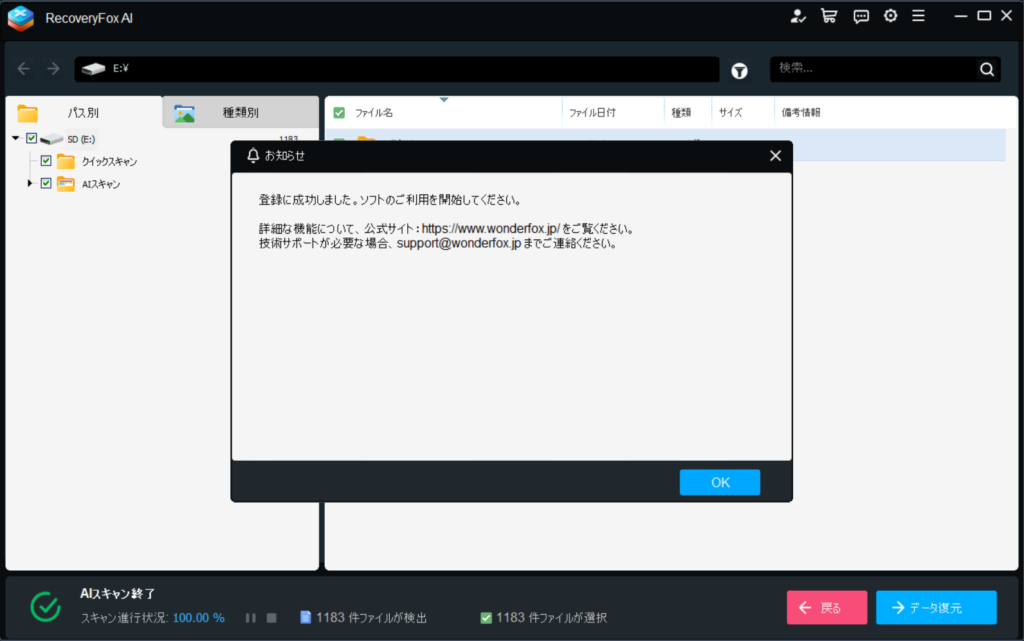 RecoveryFoxAIはスキャンとプレビューでのデータ確認までは無料で使用できるので、「まずは復旧できそうか」確認してから購入してみてはいかがでしょうか。