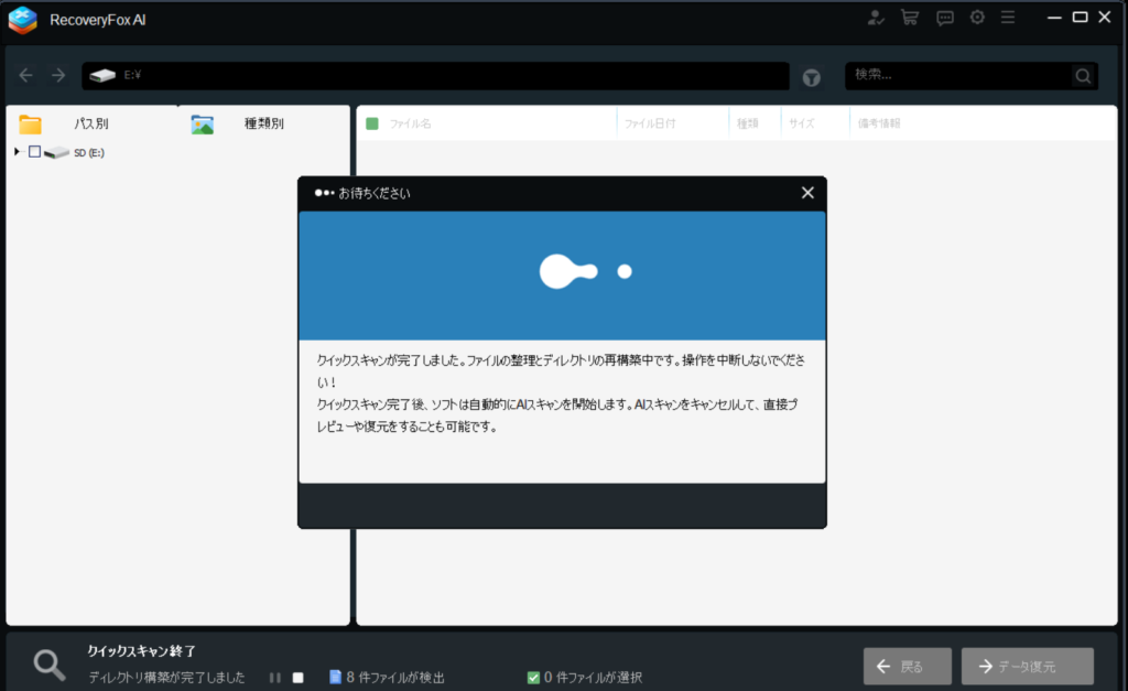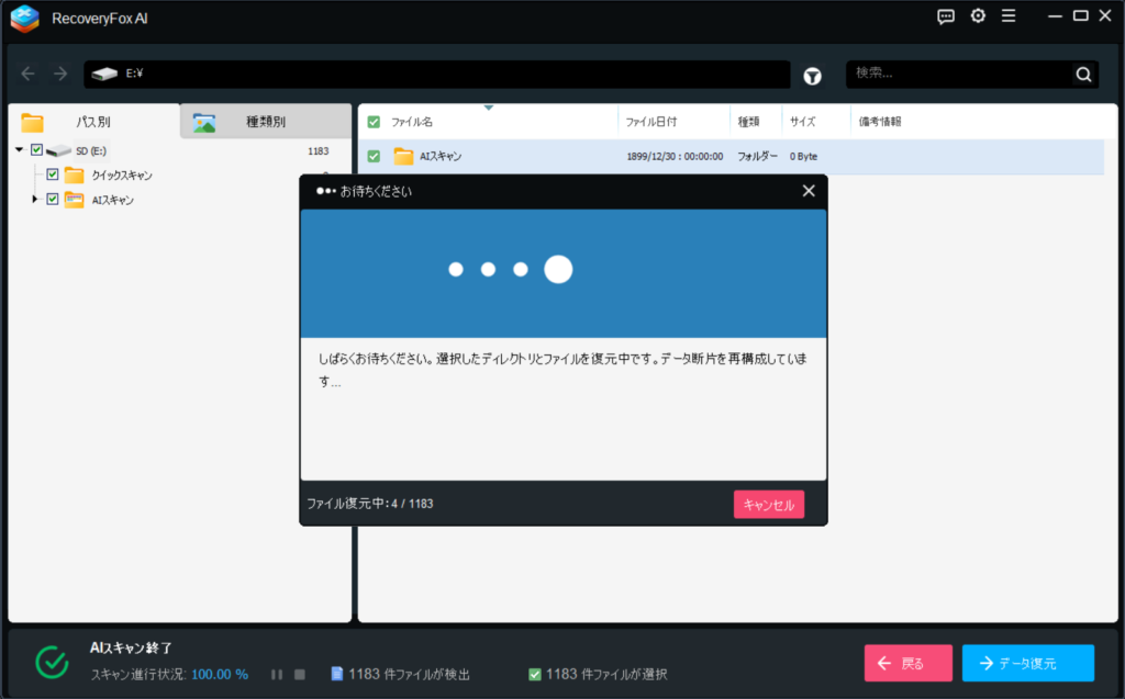 また、ソフト名にもある通りAI技術を活用しており、ファイル構造を解析しながら復旧精度を高める仕組みが採用されています。