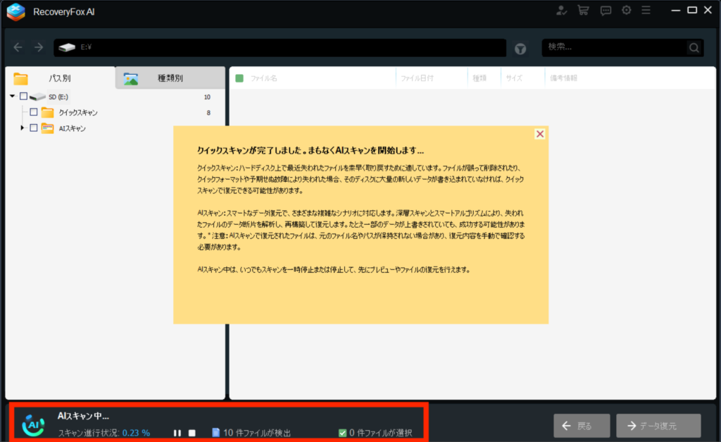 「クイックスキャン」で検出できなかったデータを「AIスキャン」でカバーする感じでしょうか。