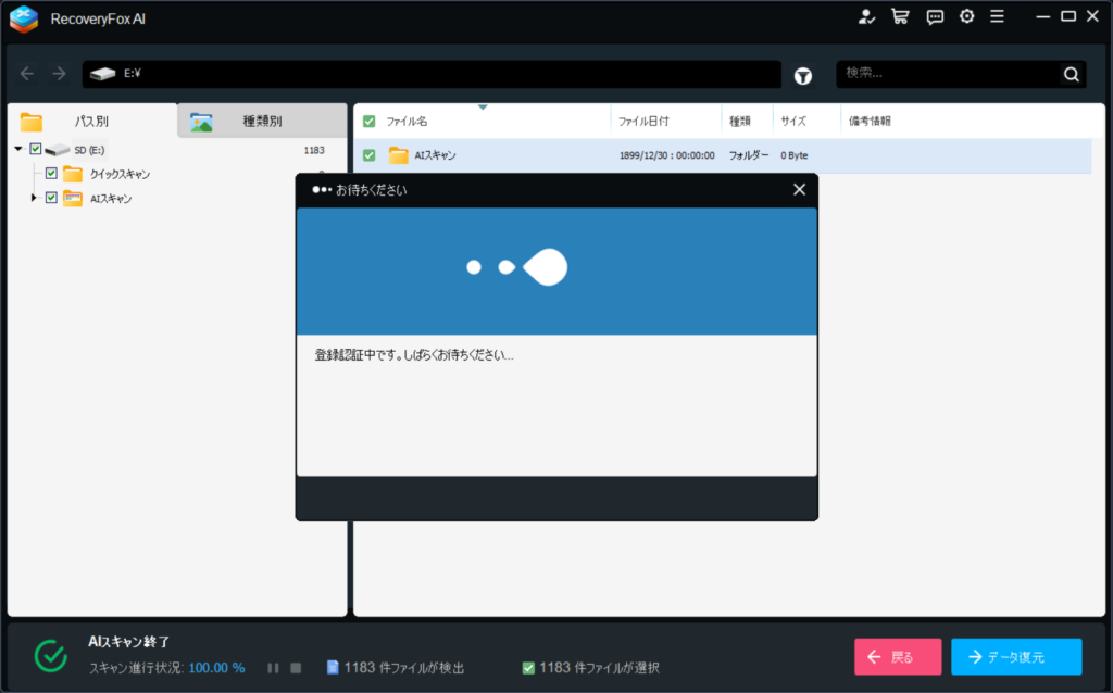 RecoveryFox AIは、スキャンと復元可能なデータのプレビューまでは無料で使えます。