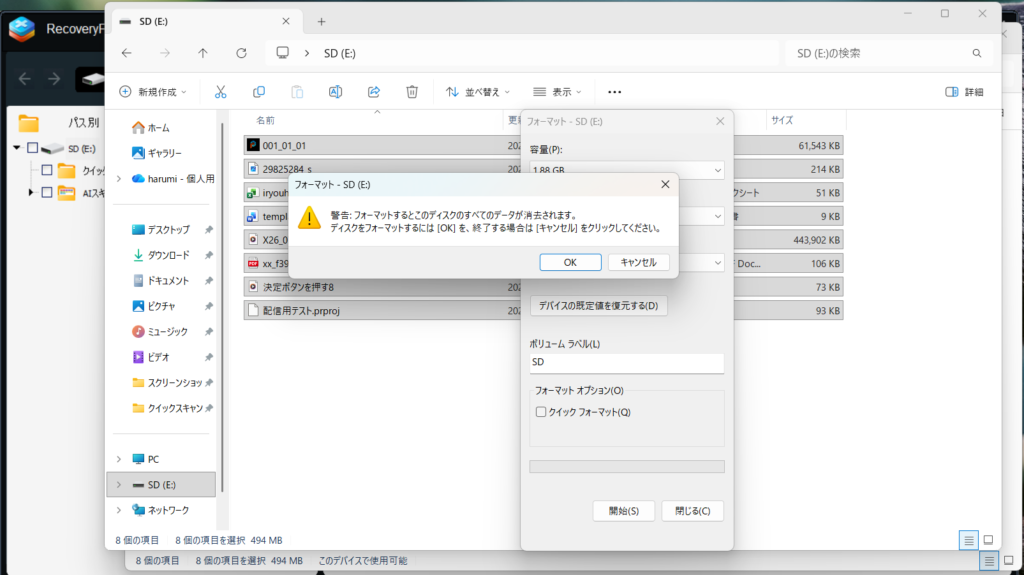 結果は、フルフォーマットした場合データの検出も復元もできませんでした。