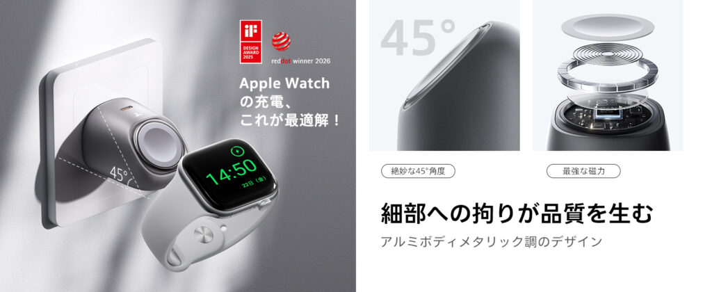 また、Apple Watchはワイヤレスでの充電が可能で、同時充電時には自動で電力配分が行われるため、複数デバイスを効率よく充電できます。