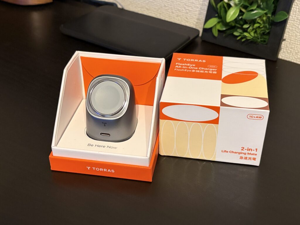 TORRAS FlashEye マルチ充電器は、iPhoneとApple Watchの充電を1台にまとめられる、コンパクトで使い勝手の良い2-in-1充電器です。