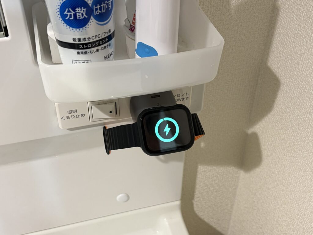Apple Watchって、お風呂以外は常時身に付けている人もいると思うので、お風呂入る際に洗面所で充電できるのは良いですよね!
