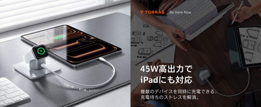 そんな悩みを解決してくれるのが、iPhoneとApple Watchを1台で充電できる「TORRAS FlashEye マルチ充電器」です。